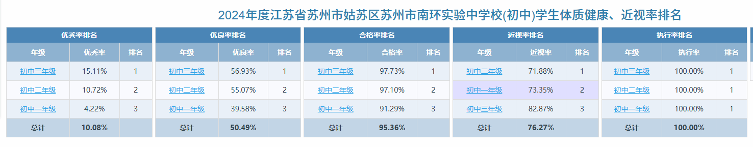 1.2024年度江苏省苏州市姑苏区苏州市南环实验中学校学生体质健康、近视率