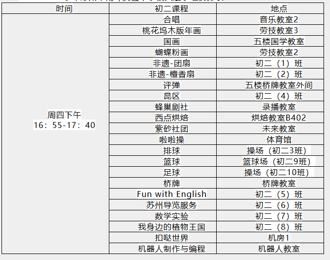 4.2024学年苏州市南环实验中学校兴趣小组安排表
