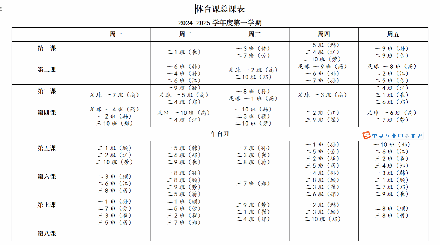2.体育总课表