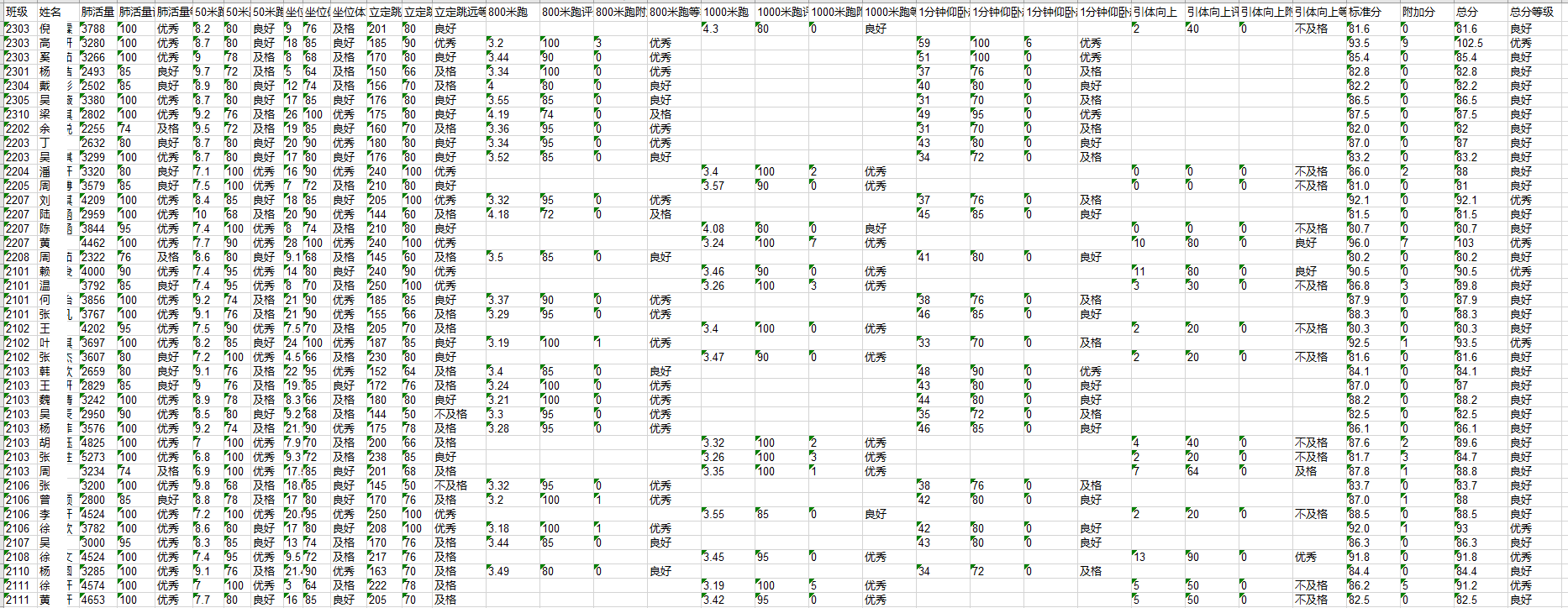 3.2024年苏州市南环实验中学校三好生体测成绩及各分项成绩